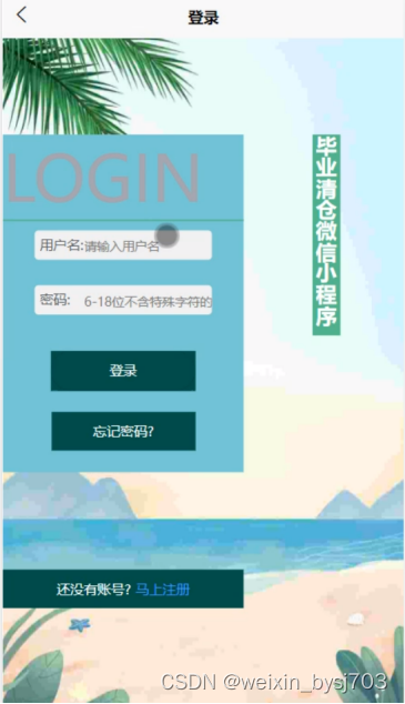 关键词:毕业清仓微信小程序;java语言;MYSQL数据库;SSM框架;