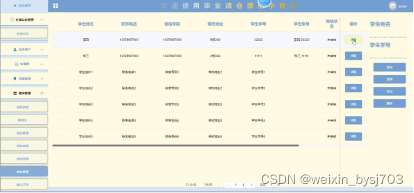 The use of this system can realize the informatization of the management of the graduation clearance WeChat applet, facilitate the administrator to carry out more convenient and quick management, and improve the management efficiency of the graduation clearance WeChat applet.