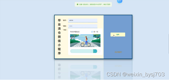 管理员登录,通过填写注册时输入的账号、密码、滑动滑块进行验证码进行登录,如图5-6所示。