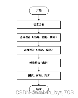 毕业清仓微信小程序开发时,首先进行需求分析,进而对系统进行总体的设计规划,设计系统功能模块,数据库的选择等,本系统的开发流程如图3-1所示