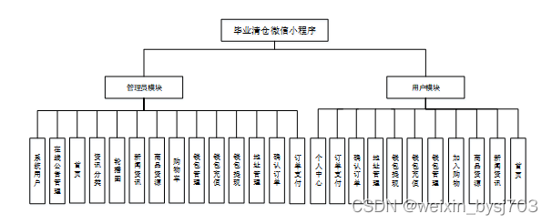 本毕业清仓微信小程序主要包括三大功能模块,即清仓功能模块、管理员功能模块和用户模块。