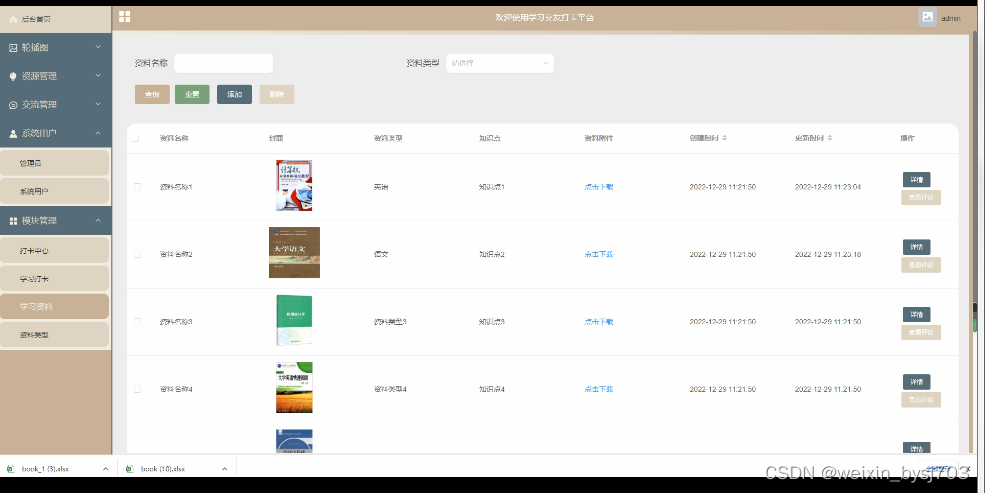 学习资料管理,可对所有学习资料进行添加、重置、删除、查询等操作,如图5-10所示。