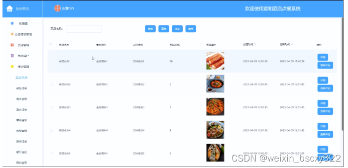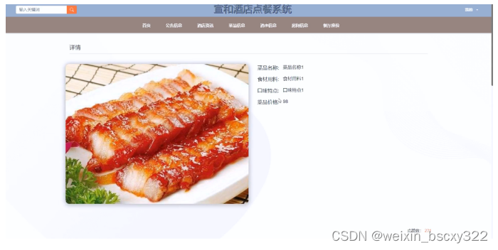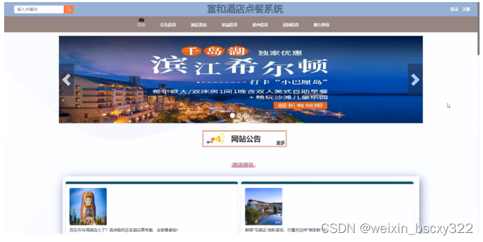 (3)轮播图/公告信息管理:管理员可以对宣和酒店点餐系统中首页显示的轮播图以及公告信息发布到系统当中,让用户及时的查看到轮播图以及公告信息,进行合理安排。