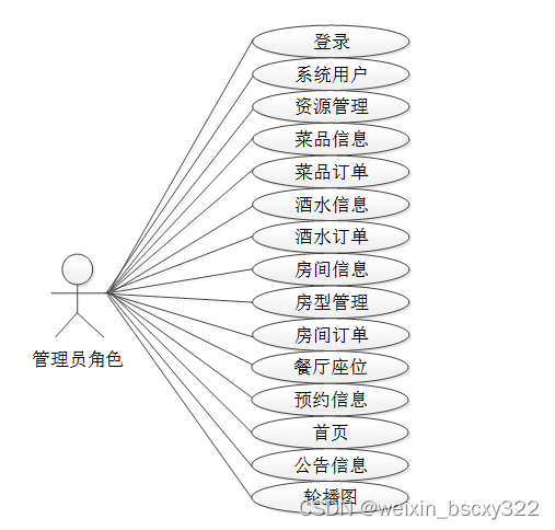 web后台管理上的管理员是维护整个宣和酒店点餐系统中所有数据信息的。管理员角色用例如图2-4所示。