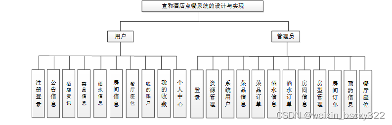 按照宣和酒店点餐系统的角色,我划分为了系统用户和管理员这两大部分。
