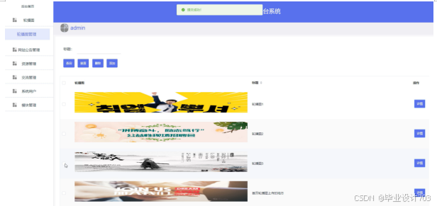 轮播图,在此页可以对轮播图进行查询、重置、删除、添加等操作。