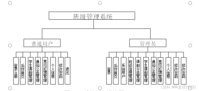 根据用户对系统的需求,要求系统简单操作,能够准确,完整的对信息进行管理。对班级管理做需求做解析后,划分为了学生用户和管理员两大功能板块。