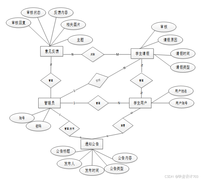 下面是整个班级管理系统中主要的数据库表总E-R实体关系图。