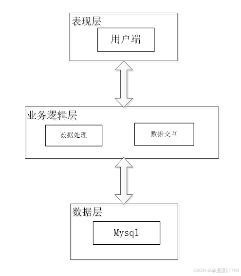 数据层(DL):由于本班级管理系统的数据是放在服务端的MySQL数据库中,因此本属于服务层的部分可以直接整合在业务逻辑层中,所以数据层中只有数据库,其主要完成本班级管理系统的数据存储和管理功能。