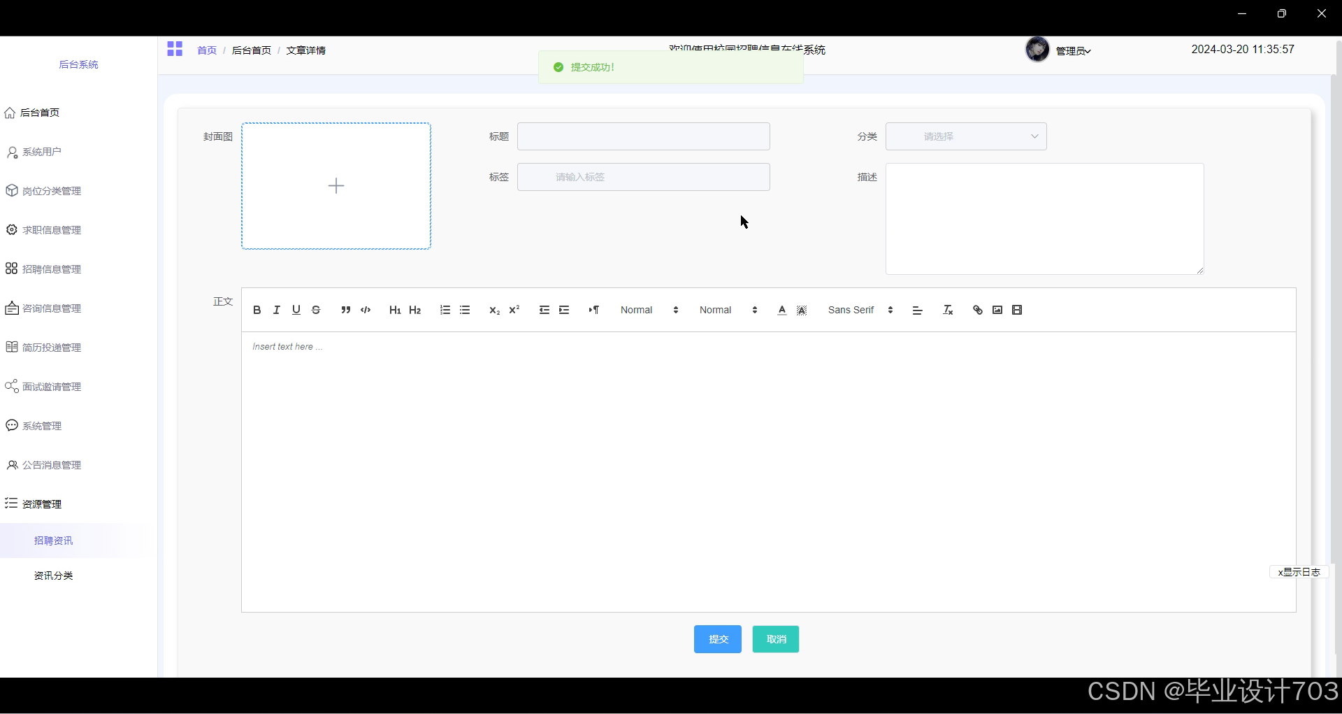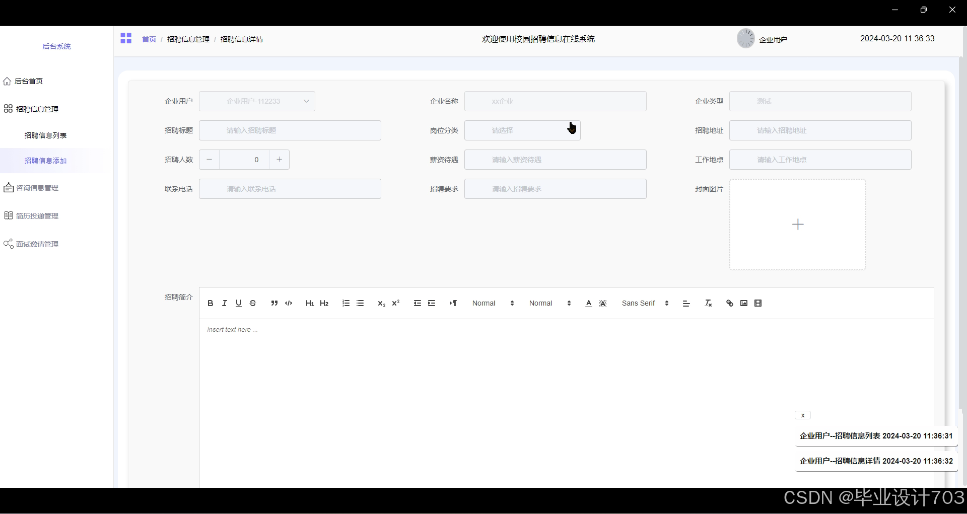 图4.12招聘资讯添加界面图