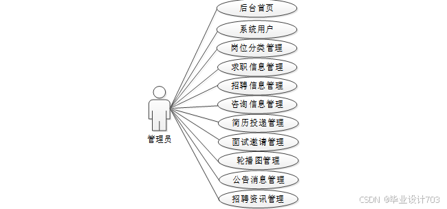 校园招聘信息在线系统中管理员用例图如图2.2所示: