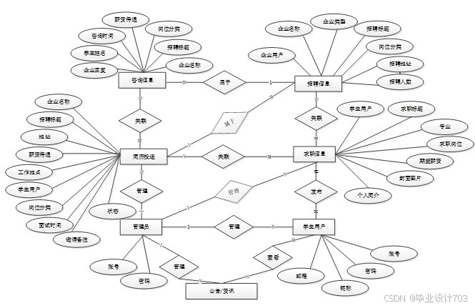 - 招聘信息管理:管理员审核和管理企业发布的招聘信息,确保信息规范和真实性。