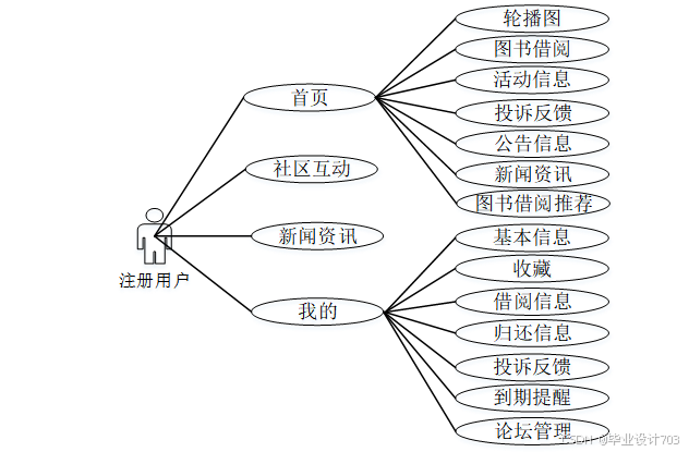 乡村书屋小程序中注册用户角色用例图如图2.1所示: