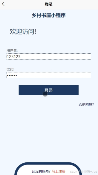 基于SpringBoot乡村书屋小程序的开发,实现了包括但不限于用户的注册登录、首页(轮播图、图书借阅、活动信息、投诉反馈、公告信息、新闻资讯、图书借阅推荐)、社区互动、 新闻资讯、我的(基本信息、收藏、借阅信息、归还信息、投诉反馈、到期提醒、论坛管理)等多元多样的功能,能够提升乡村书屋管理服务的水平和效率,满足用户需求,提升用户体验。