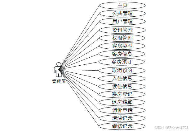 十里民宿客房管理系统中管理员用例图如图2.4所示:
