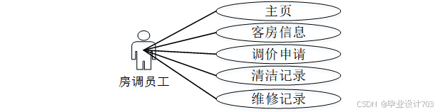 十里民宿客房管理系统中房调员工角色用例图如图2.3所示:
