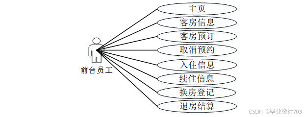 十里民宿客房管理系统中前台员工角色用例图如图2.2所示: