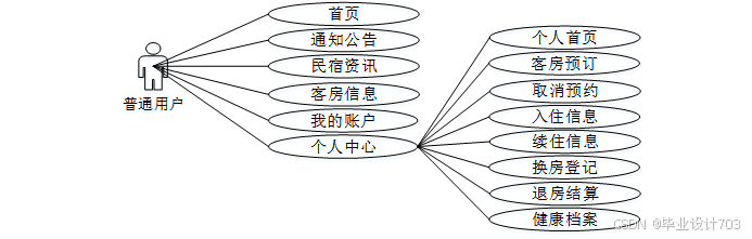 十里民宿客房管理系统中普通用户角色用例图如图2.1所示: