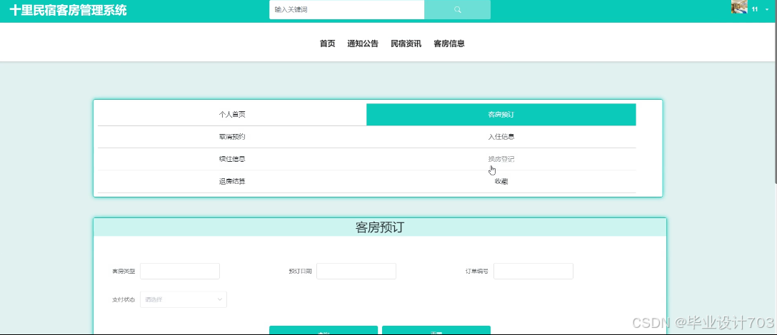 (2)系统设计与实现:采用PHP作为主要开发语言,使用MySQL数据库进行数据存储,结合前端技术实现了用户界面的设计,并说明了各个模块的功能和关系。设计并实现界面友好,为用户提供便捷且高效地搜索、浏览和选择十里民宿客房信息的渠道。考虑到用户需求,还实现了线上预订、取消、办理入住、支付、换房、退房功能。为十里民宿客房管理人员提供了管理的平台的工具,提高十里民宿客房的管理效率和服务水平。