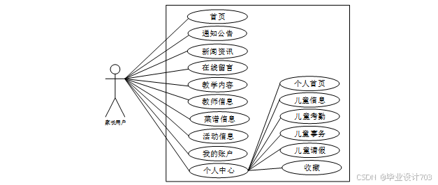威海幼儿园教务管理系统中家长用户角色用例图如图2-1所示:
