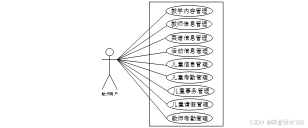 威海幼儿园教务管理系统中教师用户角色用例图如图2-2所示: