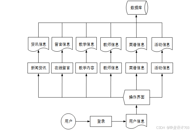 开发基于SpringBoot的威海幼儿园教务管理系统的设计与实现最主要的一个目的就是实现用户在线浏览膳食分享信息的便捷,系统的业务流程图如下所示。