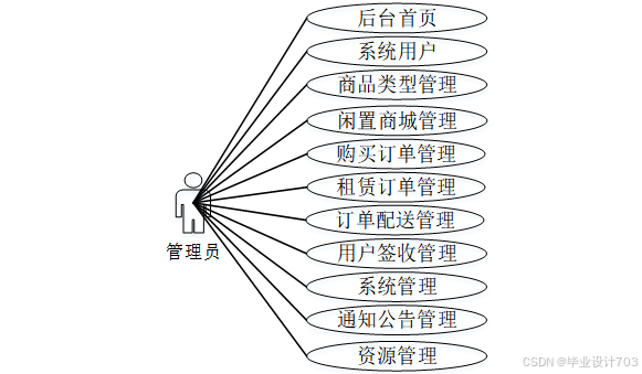 Unishare闲置物品共享系统管理员角色用例图如下所示。
