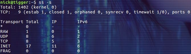 如果不添加选项 ss 命令默认输出所有建立的连接(不包含监听的端口),包括 tcp, udp, and unix socket 三种类型的连接: