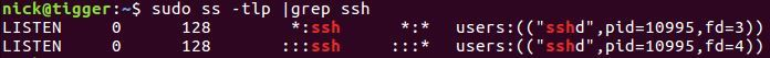 只是最后的结果稍微让人有些意外,不仅显示了监听的端口,也显示了通过 22 端口建立的连接。