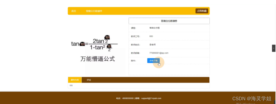 课程信息,在课程信息页面中可以查看编名称、课程、发布日期、主题公告、教师工号、教师姓名、教师邮箱等信息,进行收藏,如图5-2所示。