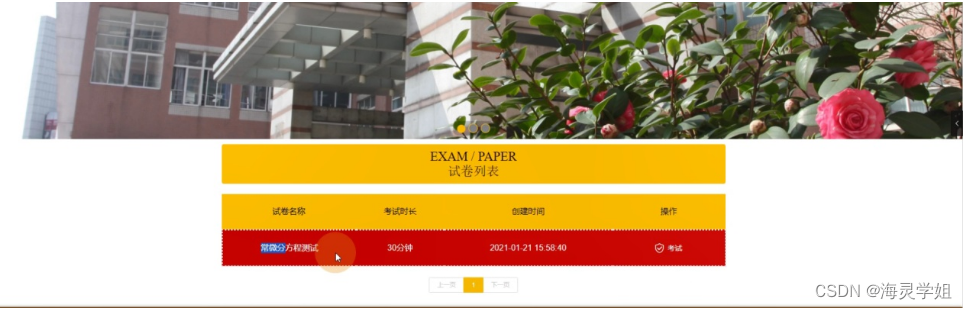 试卷列表,在试卷列表页面可以查看试卷名称、考试时长、创建时间等信息,进行考试操作,如图5-4所示。