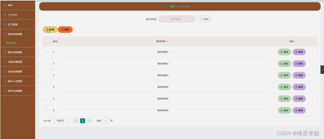 3、功能的完善性:可以管理首页、个人中心、员工管理、教材种类管理、教材信息管理、采购申请管理、发放申请管理、教材入库管理、教材出库管理模块的修改和维护操作。