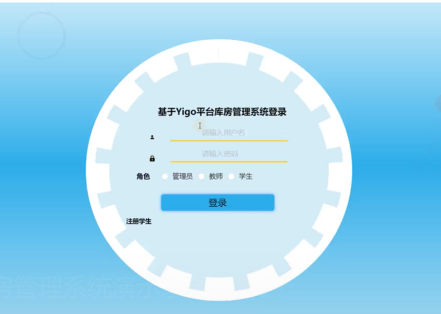 管理员进行登录,进入系统前在登录页面根据要求填写用户名和密码,选择角色等信息,点击登录进行登录操作,如图5-1所示