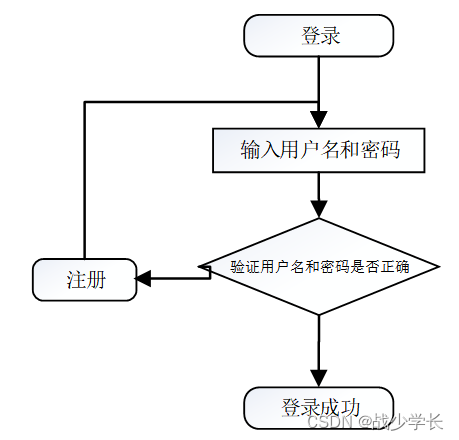 系统登录: 运行系统,首先进入登录界面,按照登录界面的要求填写相应的“账号”和“密码”以及用户类型,点击“登录”然后系统判断填写是否正确,若正确进入相应的界面,否则给出要求先注册信息。具体流程如图5-1所示。