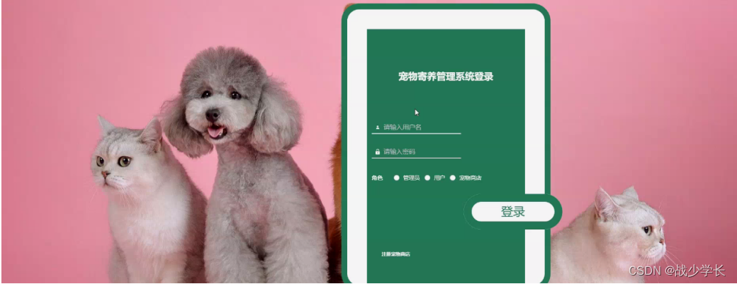 本系统的用户可分为宠物商店模块、用户模块和管理员模块三个界面组成。一个界面用于管理员登录,管理员可以管理系统内所有功能,主要有个人中心、用户管理、宠物商店管理、预约寄养管理、寄养接送管理、医疗服务管理、医疗预约管理、宠物诊疗管理、商品信息管理、商品分类管理、购买商品管理、订单信息管理 、留言板管理、系统管理等功能;另一界面用于用户登录,用户进入系统可以实现首页、宠物商店、医疗服务、商品信息、网站公告、留言板、个人中心、后台管理等功能;宠物商店进入系统后台可以实现个人中心、预约寄养管理、寄养接送管理、医疗服务管理、医疗预约管理、宠物诊疗管理、商品信息管理、购买商品管理、订单信息管理等功能。