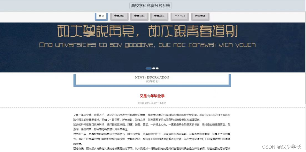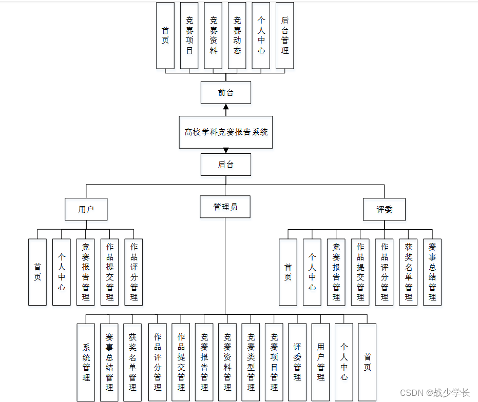 本课题要求实现一套高校学科竞赛报名系统,系统主要包括管理员,用户和评委三大模块
