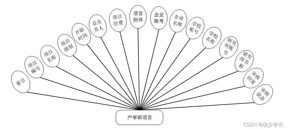 通过京津冀区域产学研项目管理信息系统的功能进行规划分成几个实体信息,实体信息将通过ER图进行说明,本系统的主要实体图如下: