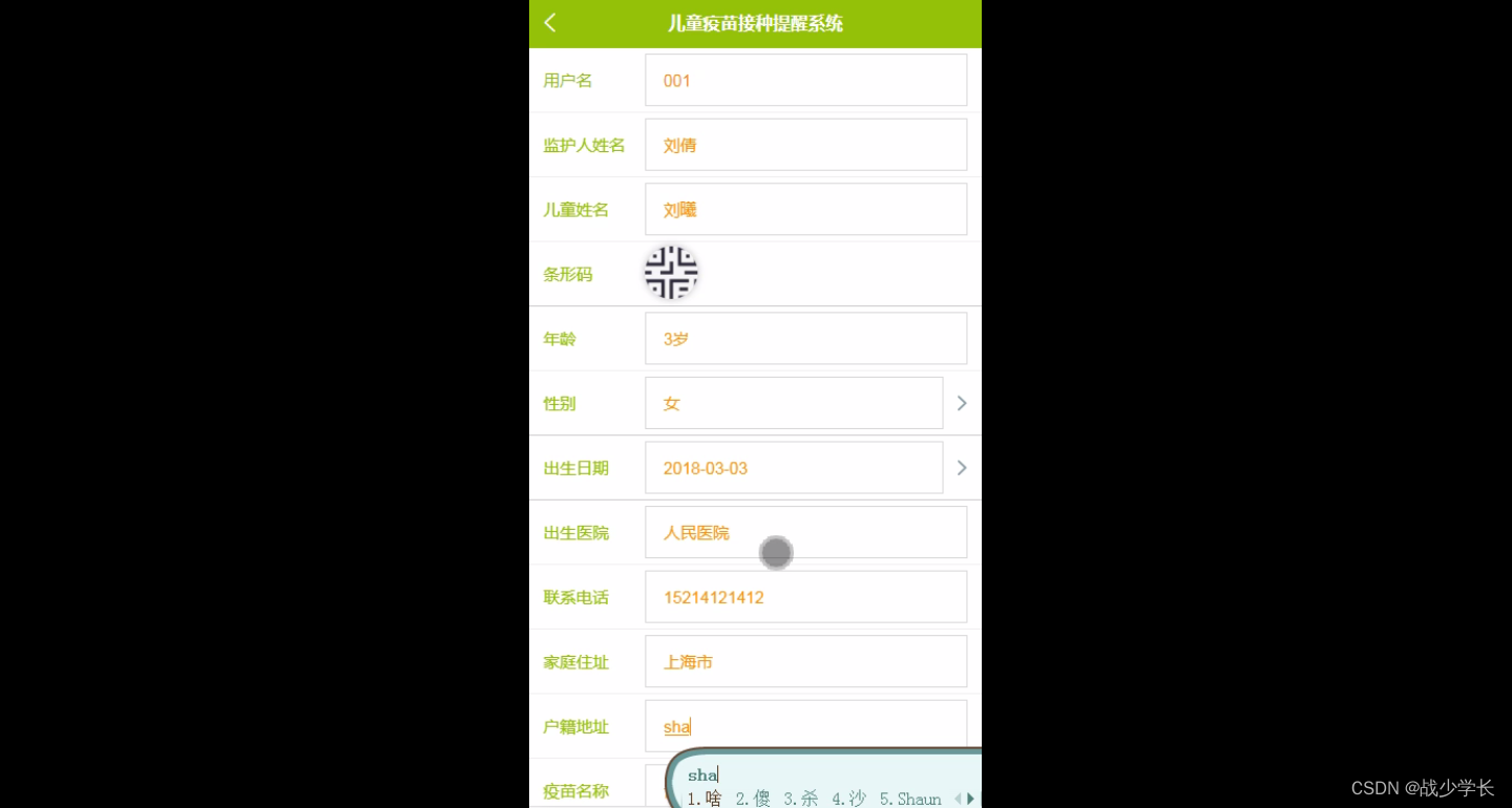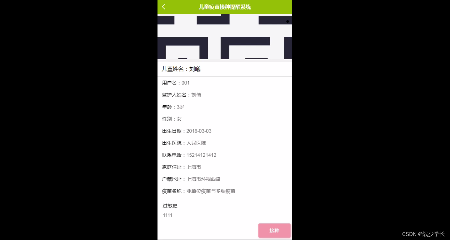 - 家长功能:家长可以注册账号并添加儿童的基本信息,包括姓名、出生日期等。系统将根据儿童的年龄和性别生成个性化的疫苗接种计划,并通过短信、推送通知等方式提醒家长及时前往接种。