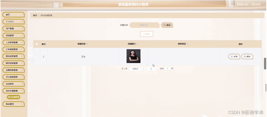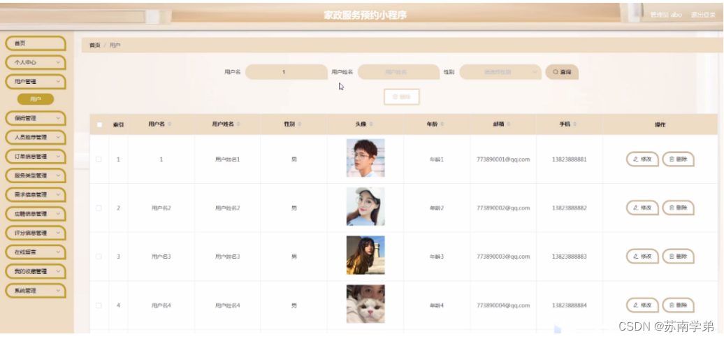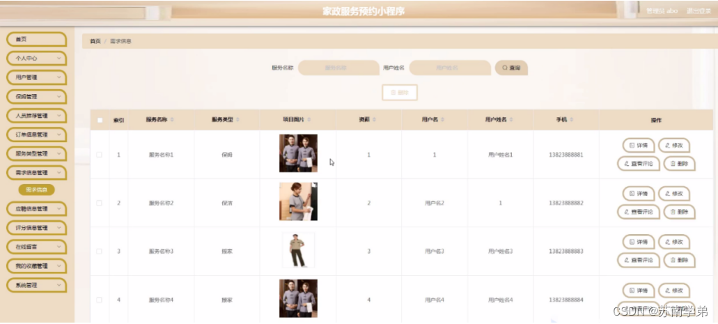 (3)对家政服务预约信息能够进行查询、修改、删除、添加等操作。
