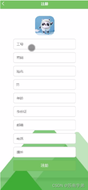 保姆注册,在注册页面可以填写工号、密码、姓名、性别、年龄、身份证、邮箱、电话、擅长等信息,进行注册,如图5-12所示。