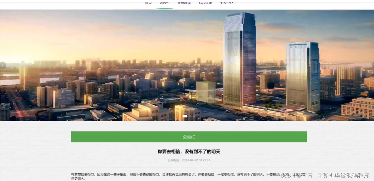 公告栏:在公告栏页面的输入栏中输入标题进行查询,可以查看公告栏详情信息;公告栏页面如图5-4所示: