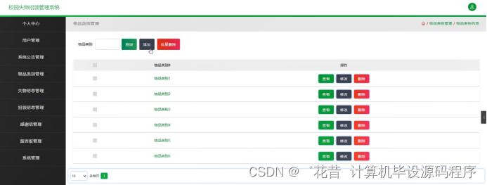 物品类别管理,在物品类别管理页面中可以对物品类别等信息进行查看、修改或删除等操作,如图4-10所示。