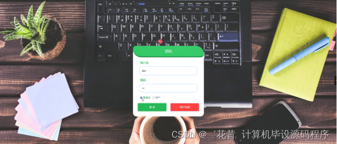 管理员登录,通过填写注册时输入的用户名、密码、选择角色进行登录,如图4-6所示。