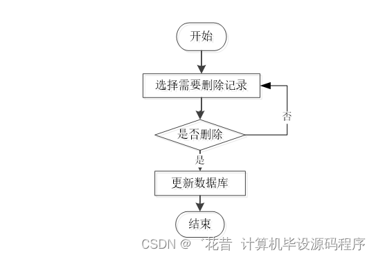 用户可选择要删除的信息进行信息删除操作,在删除信息时系统提示是否确定删除信息,是则删除信息成功,系统数据库将信息进行删除。删除信息流程图如图2-4所示。