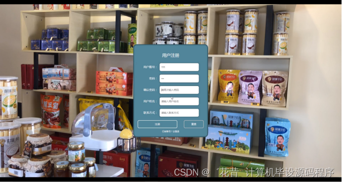 用户注册,在用户注册页面通过填写用户账号,用户姓名,密码,确认密码,联系方式等信息进行注册操作,如图5-3所示。