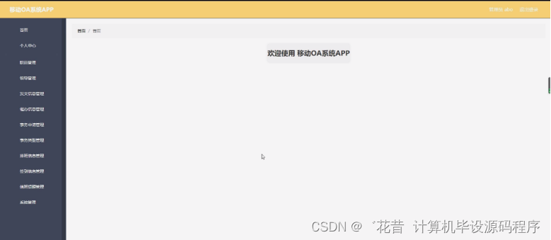 管理员通过登录进入移动OA系统APP后台可查看个人中心、领导管理、职员管理、发文信息管理、催办信息管理、事务申请管理、事务类型管理、排班信息管理、签到信息管理、值班提醒管理、系统管理等内容,如图5-15所示。