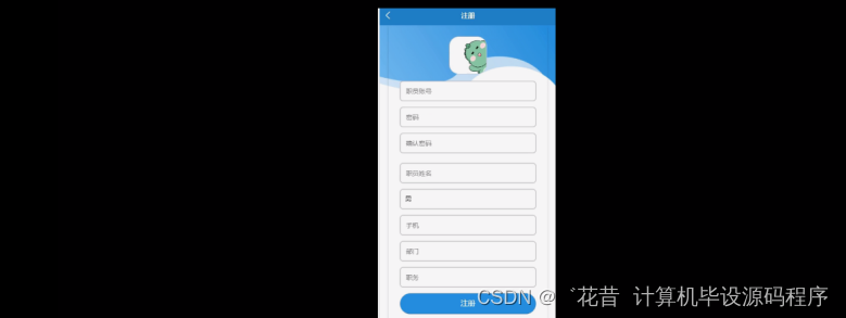 职员注册,职员通过输入职员账号、密码、职员姓名、性别、手机、部门、职务等内容进行注册,如图5-6所示。