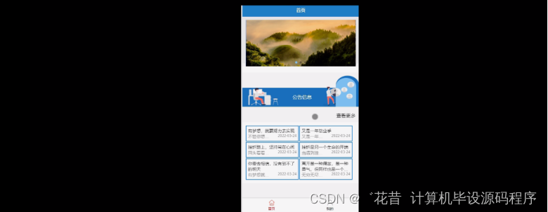 职员通过登录进入移动OA系统APP可查看首页、我的等内容,在首页还可查看公告信息等内容,如图5-8所示。
