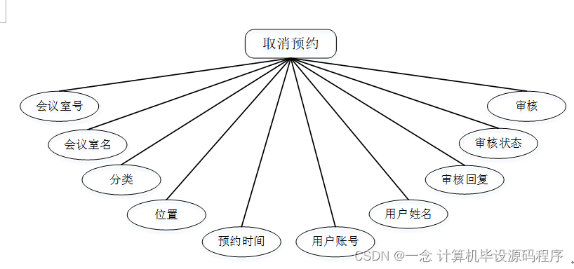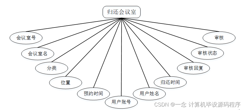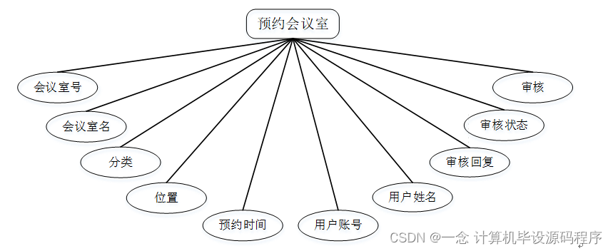 通过对微信小程序的会议室预约管理系统的主要功能信息进行规划并分为若干功能实体信息,实体信息将使用E-R图加以表示,本系统的主要功能实体图如图4-2、图4-3、图4-4所示。