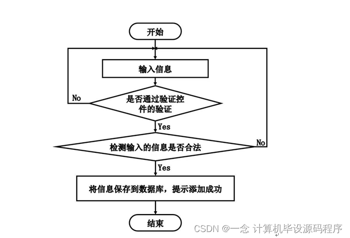 登录流程图和添加信息流程图分别如图3-5、图3-6所示。